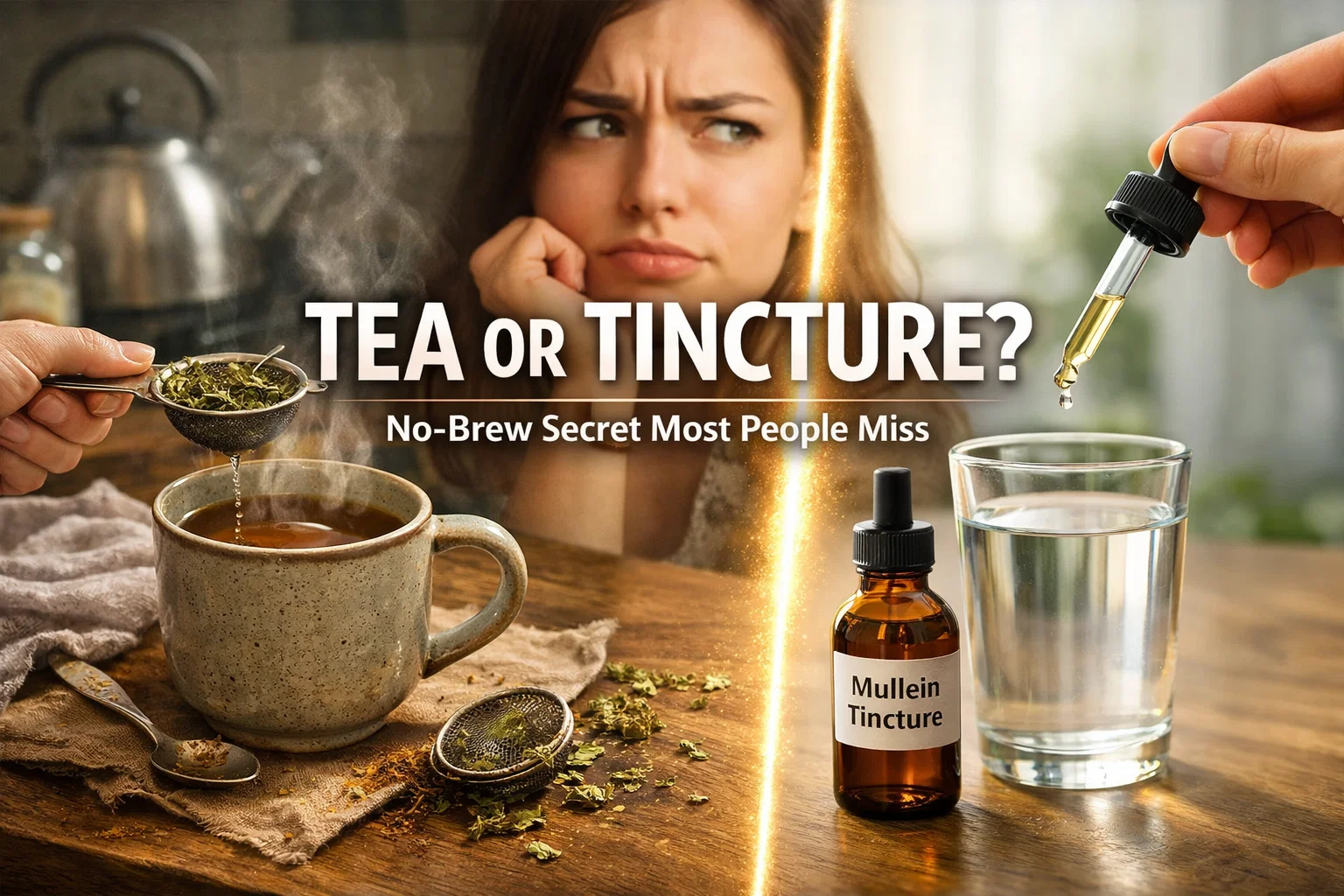 In the mullein tea vs tincture comparison, tincture is usually the better fit for people who want a no-brew herbal routine. Tea offers a gentler ritual, but tincture usually wins on speed, portability, and low-effort consistency.