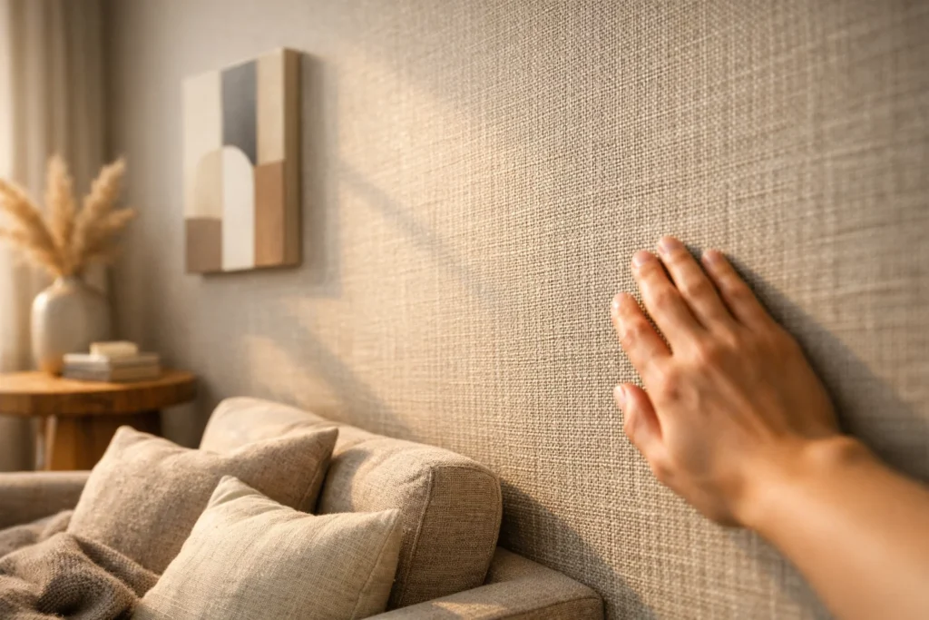 Another reason is lighting. When daylight hits a linen-like surface, you get gentle shadows. At night, warm lamps make the wall look deeper and softer. You do not need a bold pattern to create interest.